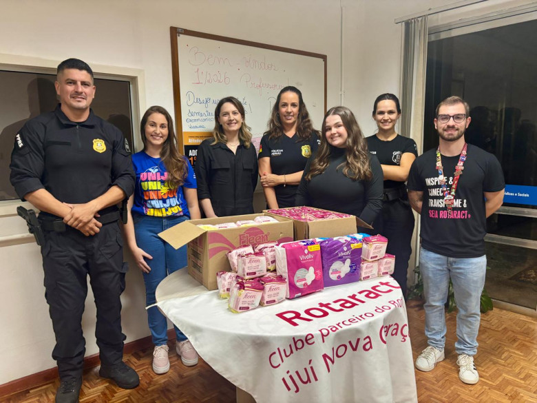 O curso de Direito da Unijuí, em parceria com o Rotaract Club de Ijuí Nova Geração, o Centro Acadêmico de Direito (Cadi) e a Penitenciária Modulada Estadual de Ijuí, realizou, no mês de março, uma campanha de arrecadação de absorventes para mulheres privadas de liberdade. A entrega de mais de 800 itens ocorreu na noite desta segunda-feira, 13 de abril, oficializando uma parceria que busca promover a dignidade menstrual das apenadas.