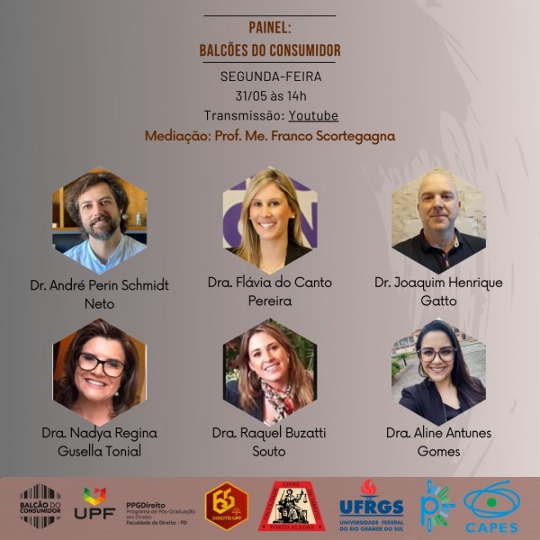 Promovido pelo Balcão do Consumidor, Universidade de Passo Fundo (UPF), Universidade Federal do Rio Grande do Sul (UFRGS) e Capes, o evento contará com a participação de mais de 60 palestrantes e 14 painéis que ocorrerão de forma simultânea através do Google Meet, com transmissão para o Youtube. Representará a Unijuí o professor Joaquim Henrique Gatto.