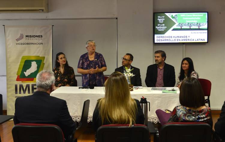 1º Painel do curso binacional de Direitos Humanos e Desenvolvimento na América Latina, contou com as palestras do Dr. Artemio Nuñez Mendez; do Ministro da Ecologia da Província de Missiones, Dr. João Manuel Díaz, que falou sobre direitos humanos e desenvolvimento sustentável, e do titular da defensoria dos direitos das crianças, meninas e adolescentes, prof. Miguel Molina sobre os direitos de crianças, meninas e adolescentes e os 30 anos da convenção sobre os direitos da criança.