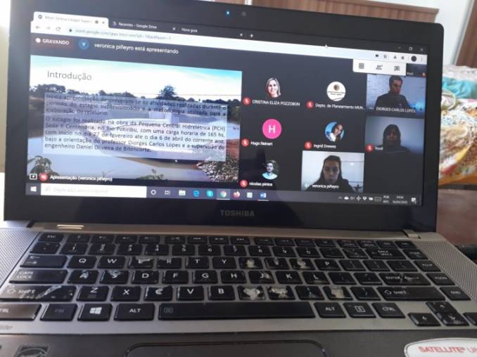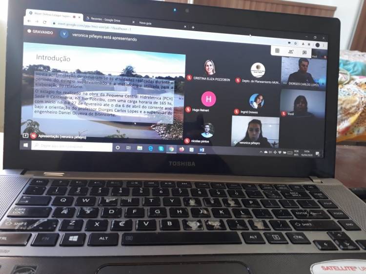 Na tarde de quinta-feira, dia 16 de abril, foram realizadas as bancas de estágio, por videoconferência, das estudantes da Universidad Nacional de Misiones (UNAM), de Oberá, na Argentina, Ingrid Beatriz Drewes e Veronica Alejandra Piñeyro. Elas realizaram intercâmbio junto ao curso de Engenharia Civil da Unijuí, em estágio na obra da PCH Sede II Centenária, da Ceriluz, em Ijuí, nos meses de março e abril deste ano.