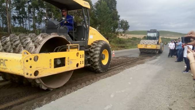 Os dois recepcionaram os estudantes durante a visita junto ao engenheiro Escobar, da empresa executora das obras Construtora Giovanella. Durante a visita, duas soluções de pistas estavam em andamento. Uma consistia na execução de fresagem do revestimento deteriorado e posteriormente a recomposição com duas camadas asfálticas, totalizando 7cm de concreto asfáltico convencional.