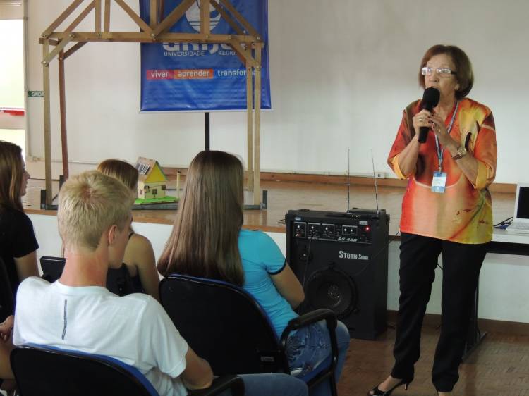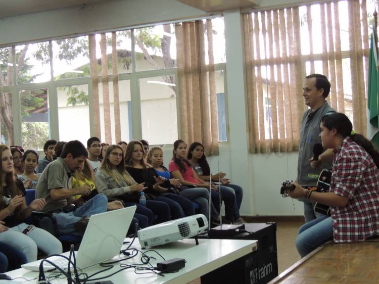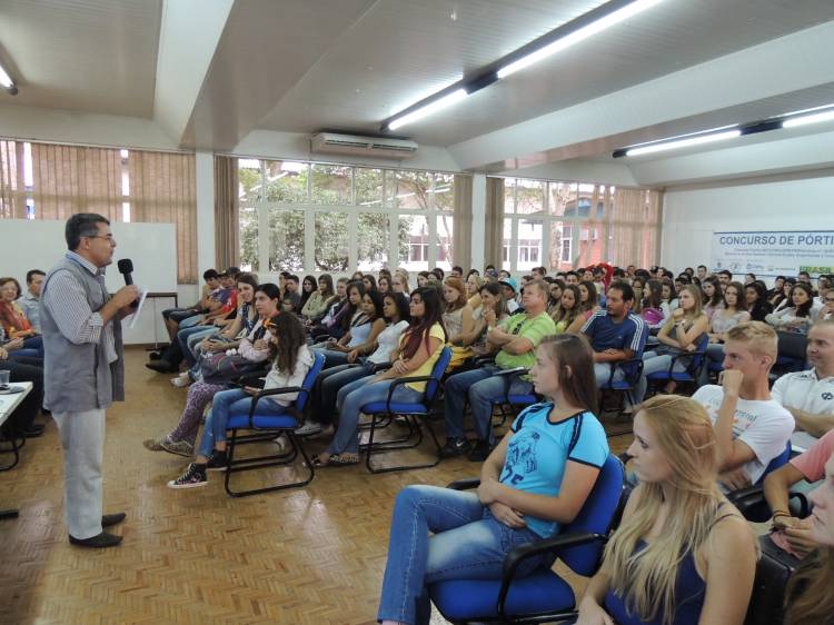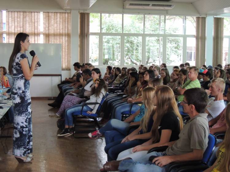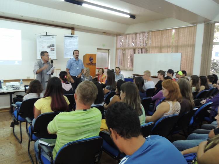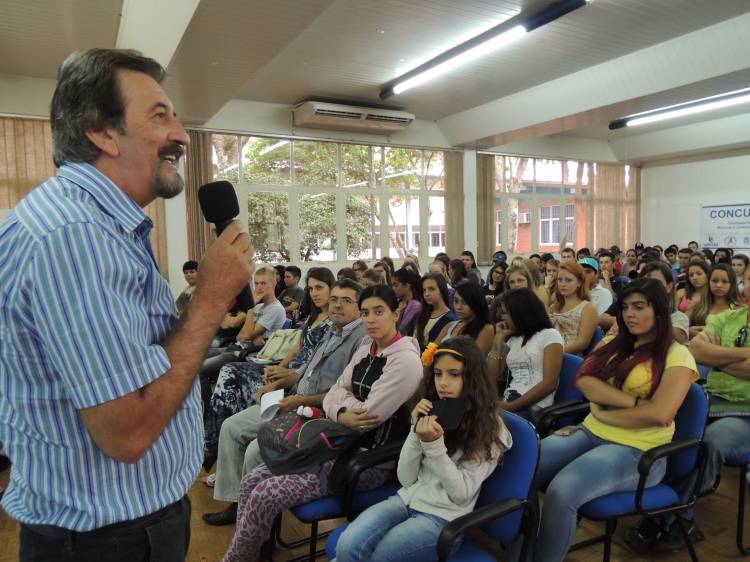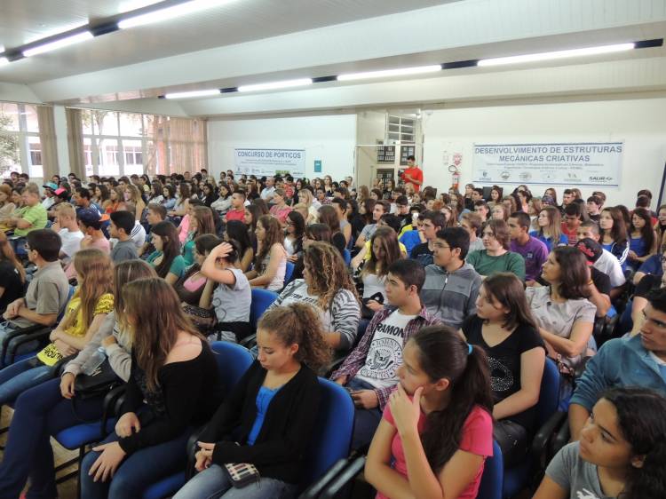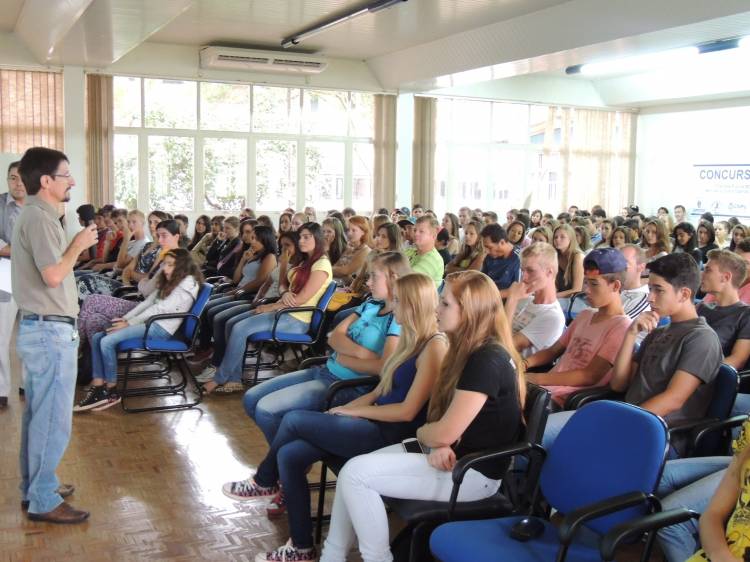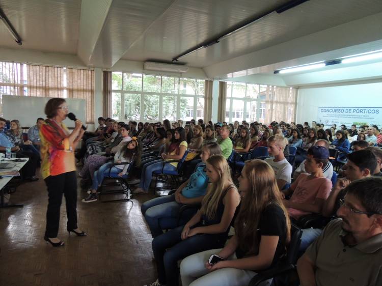 Na manhã desta quinta-feira, alunos de escolas da região Noroeste participaram da Aula Inaugural dos projetos de Interação Universidade-Escola, no Câmpus Panambi, proferida pelo professor da UNIJUÍ Antonio Carlos Valdiero.
