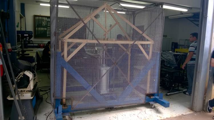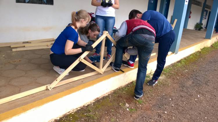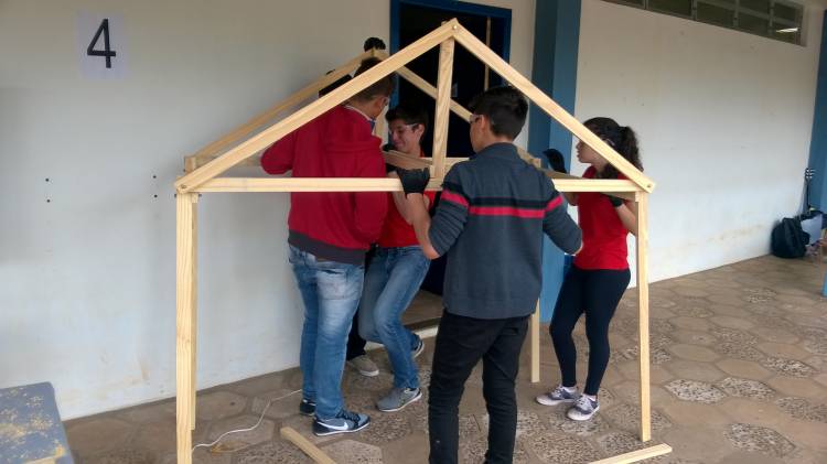As equipes foram desafiadas a construir uma estrutura tipo pórtico (formada por colunas e vigas de madeira) e foram avaliadas em critérios como: aspectos de fabricação, de montagem, de organização do trabalho, de segurança do trabalho, de gestão de resíduos (educação ambiental), de custos e de desempenho (maior capacidade de carga, menor deformação e menor massa).