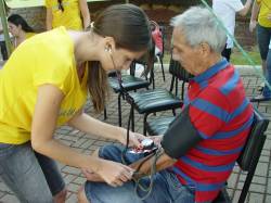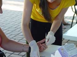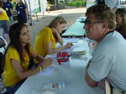 Os estudantes realizaram a verificação de glicose e pressão arterial, seguido de orientações sobre como prevenir a diabetes ou hipertensão, bem como distribuíram folders explicativos sobre a função do farmacêutico, suas áreas de atuação e as funções que desempenha.