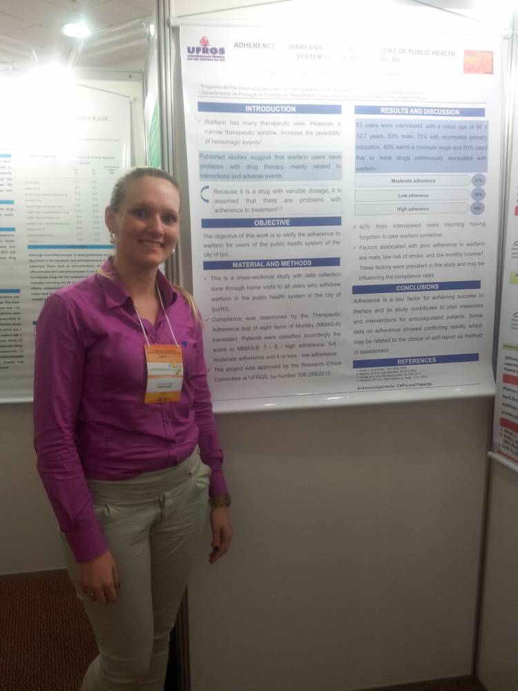 A docente, do Departamento de Ciências da Vida (Dcvida), foi premiada como destaque acadêmico, na área de Assistência Farmacêutica. O tema do trabalho científico, vinculado, ao doutorado foi “A adesão ao tratamento warfarin pelos usuários do sistema público de saúde da cidade de Ijuí / RS”, com orientação das professoras da UFRGS Isabela Heineck e Tânia Alves Amador.