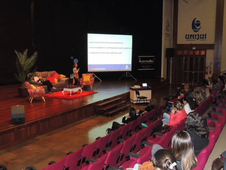 A programação foi aberta com a palestra “Vivência do Profissional Farmacêutico junto à Defensoria Pública Estadual”, tema abordado pela farmacêutica Clarissa Ruaro Xavier. Na sequência, as professoras Karla Renata de Oliveira e Christiane Colet, do curso de Farmácia da UNIJUÍ, abordaram o tema “O Papel do Medicamento na Segurança e no Uso Racional”.
