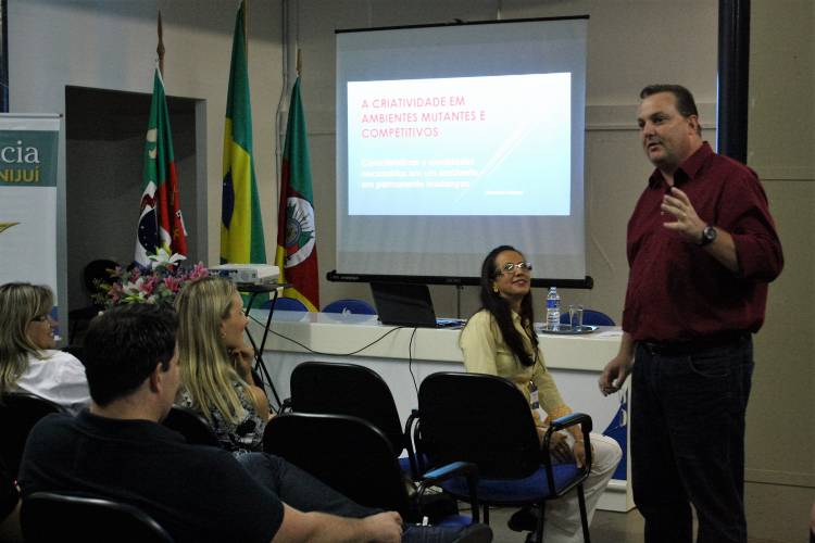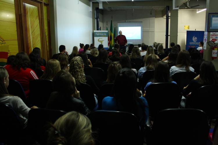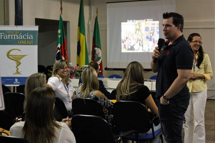 O curso de Farmácia da Unijuí realizou, na noite desta terça-feira, no Salão Azul do Campus Ijuí, a Aula Inaugural do primeiro semestre de 2016. Para marcar o evento, os calouros assistiram a palestra “A criatividade em ambientes mutantes e competitivos”, realizada pelo gerente da Coordenadoria de Marketing da Universidade, Giancarlo Bottega.