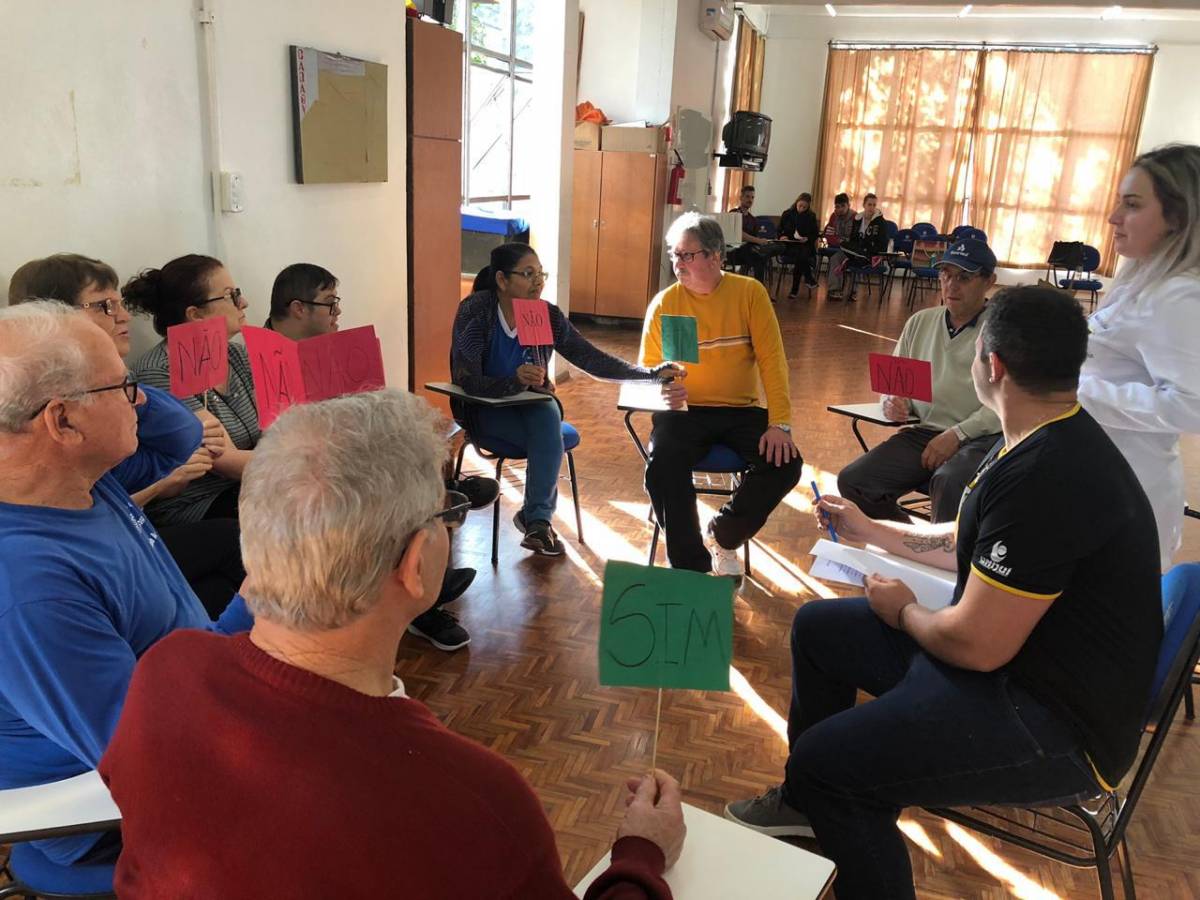 O grupo promoveu também atividades educativas com grupo de idosos sobre o uso correto de medicamentos, trabalhando a promoção de saúde e esclarecendo dúvidas sobre uso, descarte e indicação terapêutica dos medicamentos. Para aumentar o alcance junto ao público, foram feitas divulgações nos meios de comunicação local, com entrevistas para o Jornal da Manhã, o Comunica e rádios Progresso e Repórter.