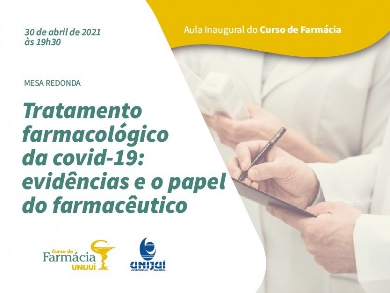 Na próxima sexta-feira, dia 30 de abril, o curso de Farmácia da Unijuí realiza a sua aula inaugural com o tema “Tratamento farmacológico da Covid-19: evidências e o papel do farmacêutico”.