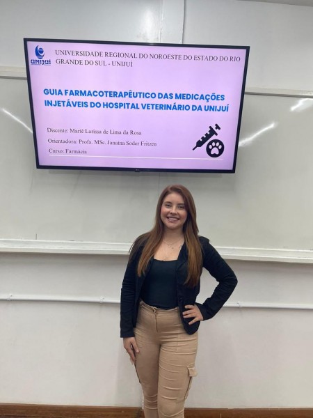 A recém-formada no curso de Farmácia da Unijuí, Mariê Larissa de Lima da Rosa, concluiu sua jornada na graduação através do desenvolvimento de um guia farmacoterapêutico de medicamentos injetáveis para o Hospital Veterinário da instituição, no seu Trabalho de Conclusão de Curso (TCC).