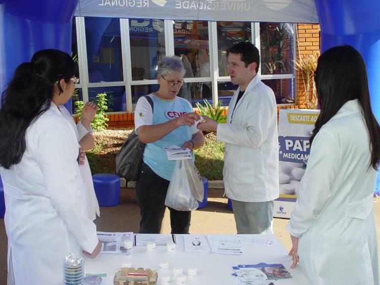 O curso de Farmácia esteve presente na Casa da UNIJUÍ, na EXPOIJUÍ 2013, no dia 17 com orientação sobre o descarte correto de medicamentos e tipagem sanguínea.