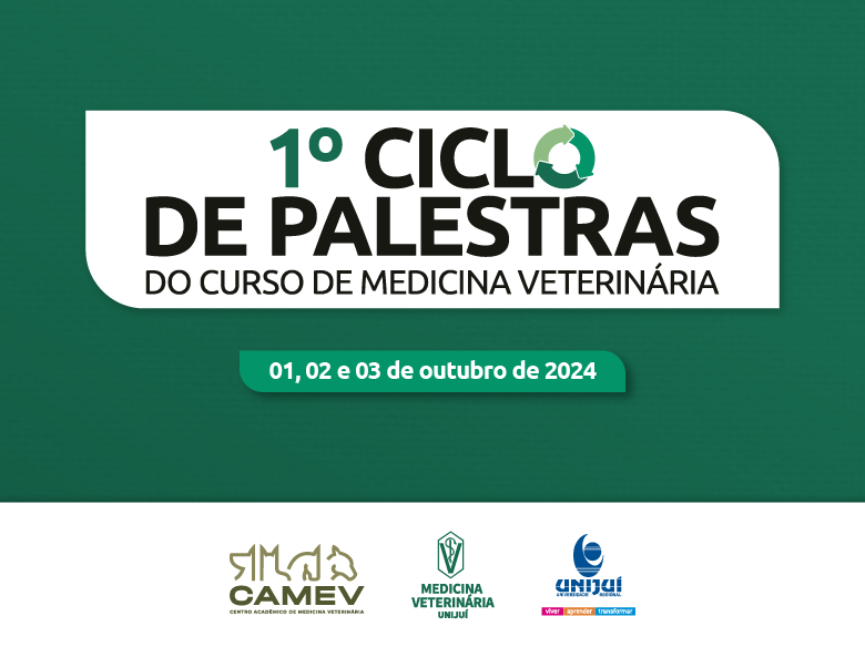 Entre os dias 1º e 3 de outubro, o curso de Medicina Veterinária da Unijuí promoverá o seu 1º Ciclo de Palestras. As atividades serão realizadas no campus da Unijuí em Ijuí e também no Instituto Regional de Desenvolvimento Rural - IRDeR, a Escola Fazenda da Universidade.