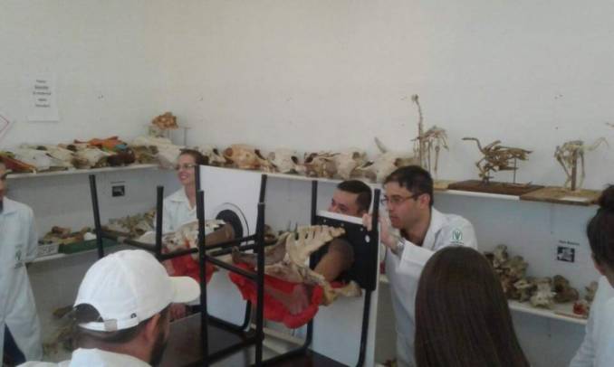 Na última semana do mês de março, os estudantes da disciplina de Ginecologia e Andrologia Veterinária testaram simuladores de palpação retal confeccionados pelo GEAVet (Grupo de Estudo em Anatomia Veterinária). Estes simuladores são utilizados como métodos alternativos ao uso de animais em aulas práticas e uma forma de preparar o estudante para, na sequência, realizar a mesma técnica em animais vivos.
