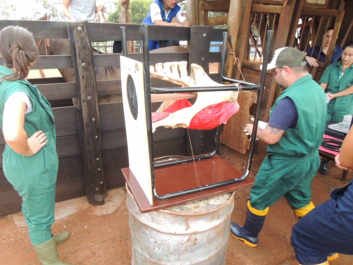 Na atividade de campo os alunos acompanharam os procedimentos que compõem o exame clínico e ultrassonografico do trato reprodutivo de fêmeas equinas. Avaliaram a dinâmica do ciclo estral e diagnóstico de gestação. Segundo a professora Roberta, “o exame reprodutivo com a utilização da ultrassonografia e outros exames complementarem como a citologia e cultura bacteriológica, que auxiliam para o diagnóstico preciso de patologias reprodutivas em fêmeas equinas, orientando o médico veterinário no tratamento adequado.