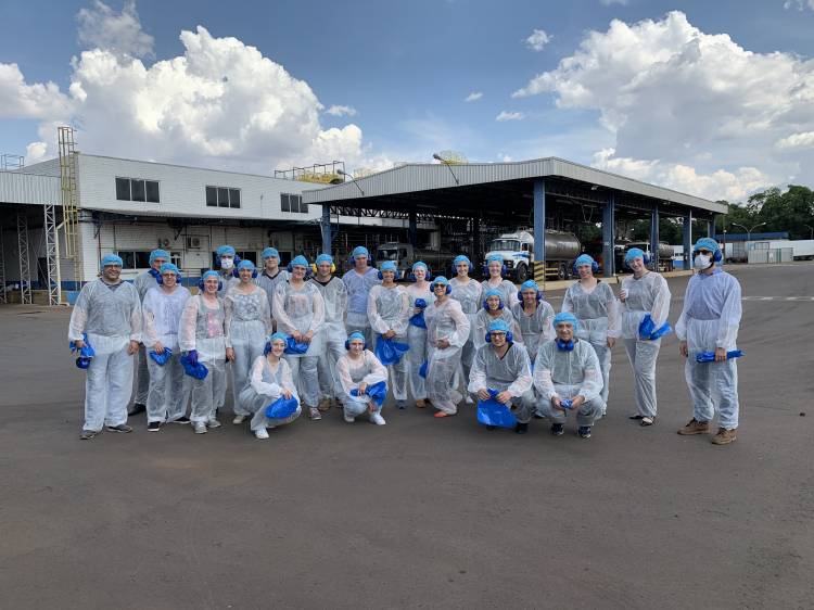 No dia 19 de outubro, estudantes da disciplina de Tecnologia de Produtos de Origem Animal do curso de Medicina Veterinária, acompanhados do professor Raul Vicenzi, realizaram visita técnica à empresa Lactalis, unidade de Ijui. Durante a visita, foi apresentada a estrutura e funcionamento da empresa por meio de vídeo institucional e posteriormente os alunos tiveram a oportunidade de conhecer as principais operações unitárias no beneficiamento do leite, desde a chegada da matéria-prima na indústria, passando pelo controle de qualidade físico-químico, bem como as etapas de fabricação de alguns produtos lácteos, como queijos, soro de queijo em pó, composto lácteo em pó, fatiamento de queijos, envase, armazenamento dos produtos prontos e expedição.