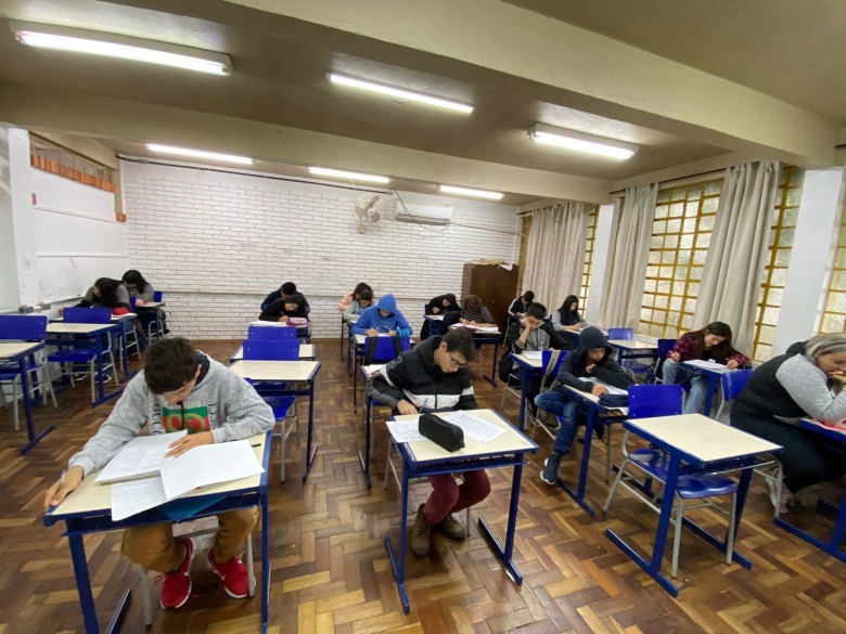 Alunos da Escola Emil Glitz respondem à questionário formulado por acadêmicos de Medicina Veterinária.