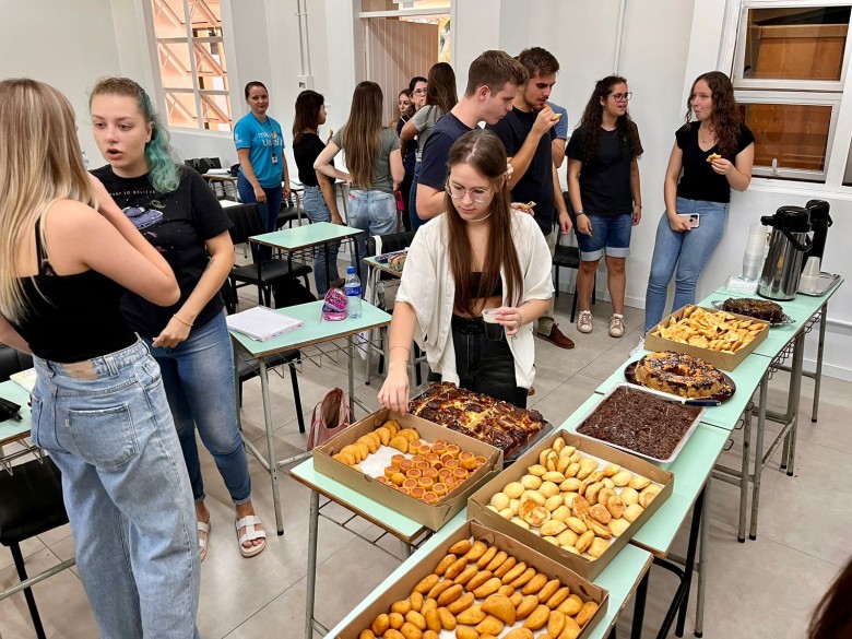 Os calouros do curso de Medicina Veterinária da Unijuí tiveram uma aula diferente na manhã desta segunda-feira, 27 de fevereiro. Os acadêmicos receberam um café da manhã, promovido pelos professores e secretárias do curso em parceria com o Centro Acadêmico de Medicina Veterinária (Camev).