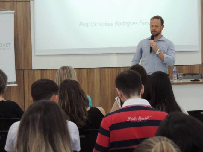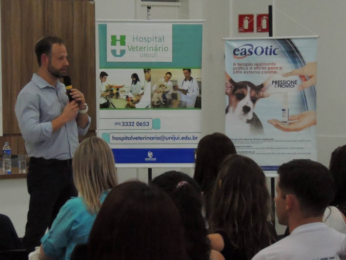 Na noite desta quarta-feira, 13, o Centro de Eventos recebeu a palestra “Como tratar piodermite no cão com dermatite atópica?”, ministrada pelo professor doutor Rafael Ferreira, de Porto Alegre. O evento foi promovido pelo Departamento de Estudos Agrários, curso de Medicina Veterinária e Centro de Inovação Tecnológica em Produção e Saúde Animal. Participaram da palestra estudantes de graduação, professores e profissionais da área.