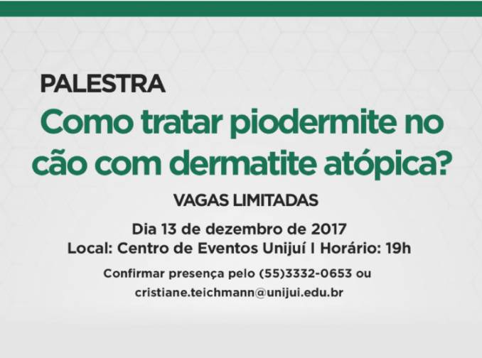 O Programa de Pós-Graduação em Clínica Veterinária de Pequenos Animais da UNIJUÍ promove, no dia 13 de dezembro, a palestra ‘Como tratar piodermite no cão com dermatite atópica?’ ministrada pelo professor doutor Rafael Ferreira, de Porto Alegre.