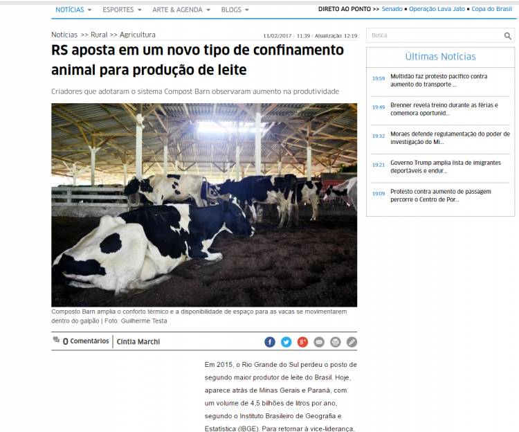Você sabe o que é Compost Barn? Já ouviu falar desta prática desenvolvida na bovinocultura? Para explicar esta prática relativamente nova, o caderno Rural do Correio do Povo, mais tradicional jornal do Rio Grande do Sul, produziu uma reportagem especial. Dentre as fontes destacadas para explicar o tema, a professora Denize Fraga, do curso de Medicina Veterinária da Unijuí.