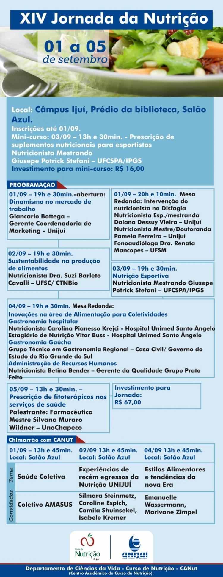 Inicia no dia 1 de setembro, às 19h30, no Salão Azul do Câmpus Ijuí, a XIV Jornada da Nutrição.
