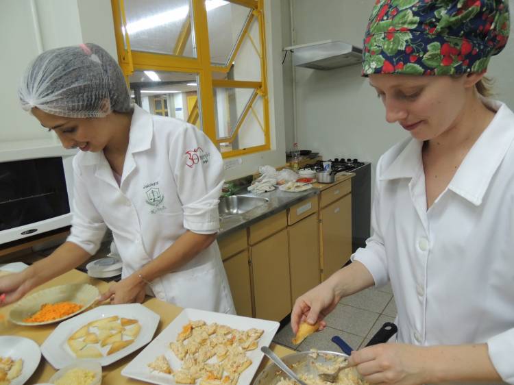 A proposta da prática foi a elaboração de receitas de lanches saudáveis para crianças. Os alunos do 4º período do Curso de Nutrição prepararam lanches saudáveis no Laboratório de Técnica Dietética e contaram com a presença de pais e alunos da Educação Básica do Centro de Educação Básica Francisco de Assis – EFA. Esta atividade foi uma parceria entre a disciplina e o Projeto de pesquisa: Consumo Alimentar de Estudantes de Educação Básica, desenvolvido na escola, sob a orientação das professoras Maristela Borin Busnello e Ligia Bento Franz.