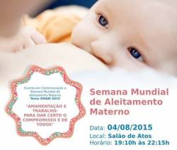 O Curso de Nutrição da UNIJUÍ promove nesta terça-feira, 04 de agosto, evento em comemoração à Semana Mundial de Aleitamento Materno, que este ano tem como tema “Amamentação e Trabalho: para dar certo o compromisso é de todos”.