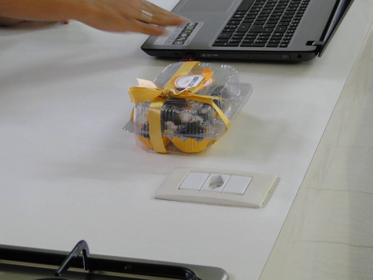 Na foto acima, a defesa dos produtos para colegas da turma e convidados