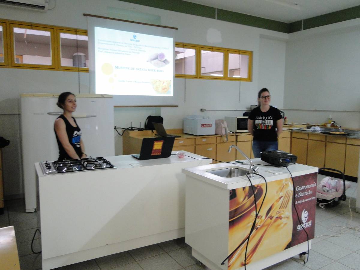 Foram apresentadas as seguintes concepções de produtos: sorbet de pêssego, muffin de batata-doce roxa, biscoito de farinha de batata-doce distratada, granola utilizando semente de abobora e melancia, biscoito a base de legumes, pão de alho sem glúten, pirogui de butiá, brigadeiru's de maça e trufa de batata-doce.