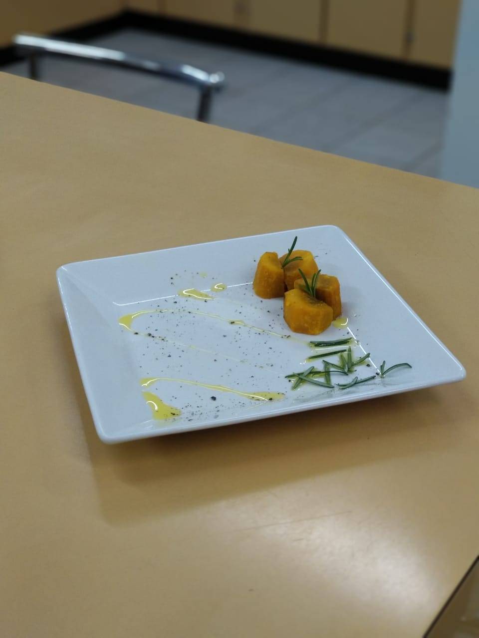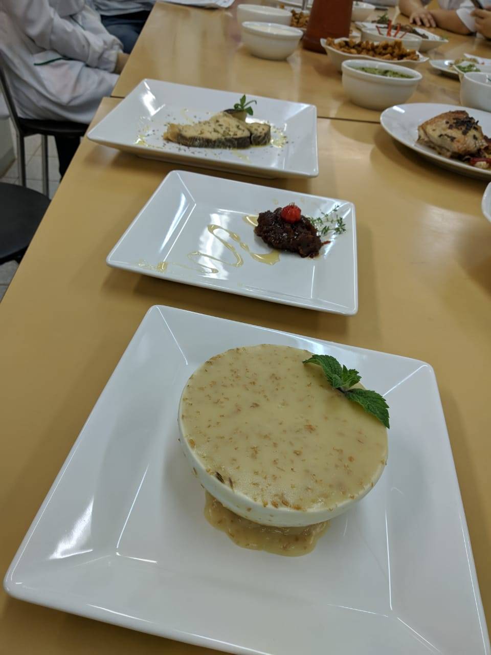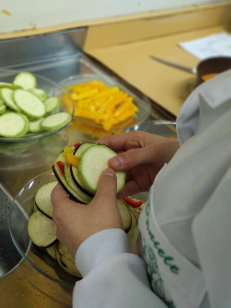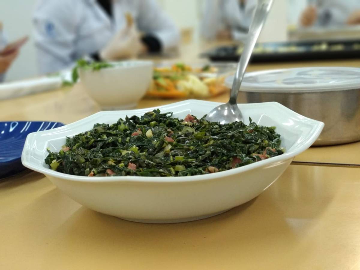 Para conhecer os cortes de hortaliças, Andressa Burmann, egressa do curso de Nutrição e especialista em Gastronomia Aplicada a Nutrição pela Unijuí, foi convidada para uma aula prática, também no Laboratório, falando sobre hortaliças, temperos, ervas, especiarias e condimentos. Nessa noite, os alunos tiveram a oportunidade de conhecer os cortes, praticar e elaborar receitas com as hortaliças picadas à brunoiese, chifonadas, em cubos, bastonetes e outros.