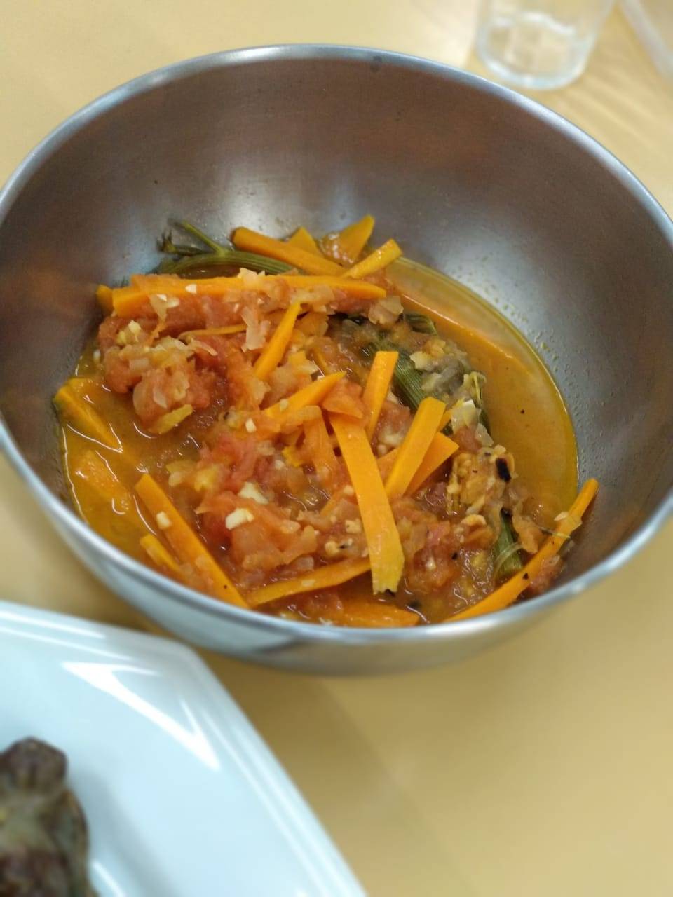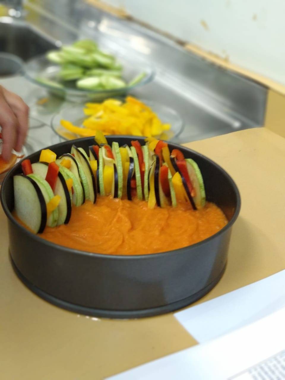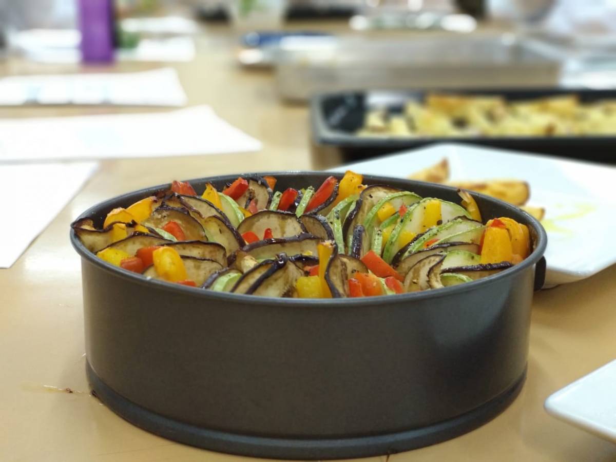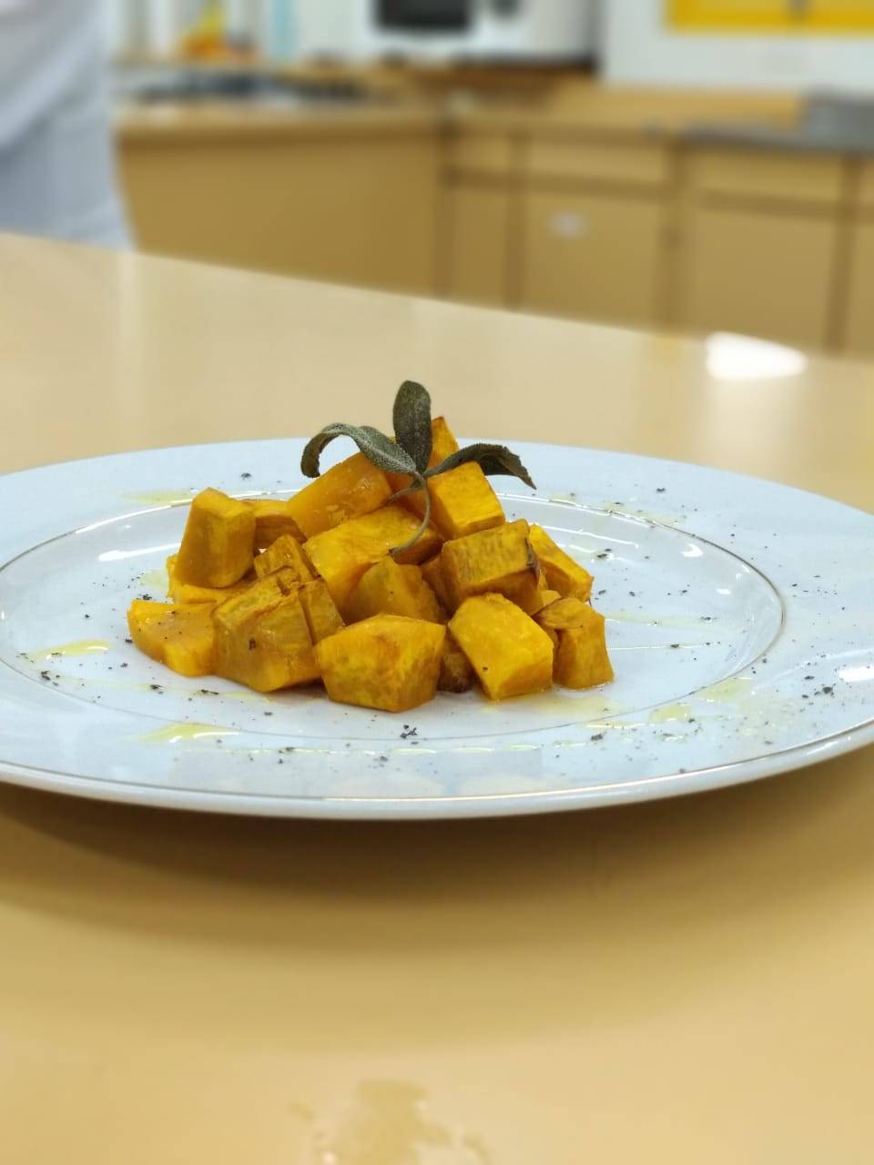 Para conhecer os cortes de hortaliças, Andressa Burmann, egressa do curso de Nutrição e especialista em Gastronomia Aplicada a Nutrição pela Unijuí, foi convidada para uma aula prática, também no Laboratório, falando sobre hortaliças, temperos, ervas, especiarias e condimentos. Nessa noite, os alunos tiveram a oportunidade de conhecer os cortes, praticar e elaborar receitas com as hortaliças picadas à brunoiese, chifonadas, em cubos, bastonetes e outros.