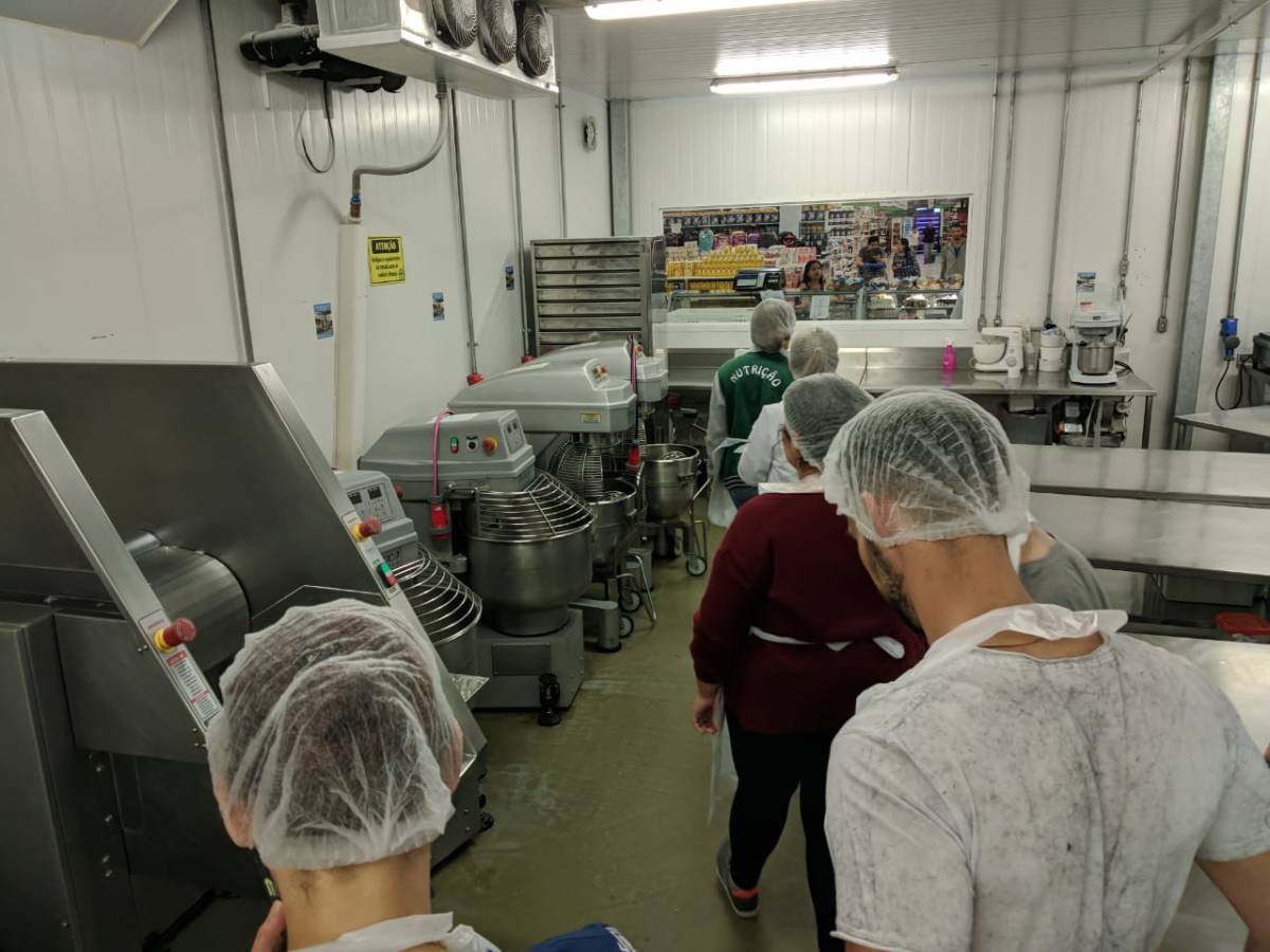Na visita tiveram a oportunidade de conhecer e acompanhar o serviço de produção da padaria e confeitaria e do açougue, desde o recebimento de gêneros alimentícios até a distribuição. Também foi apresentado o programa de qualidade da empresa na produção de alimentos. A responsável pelo serviço, Jeniffer Carré, acompanhou a visita.