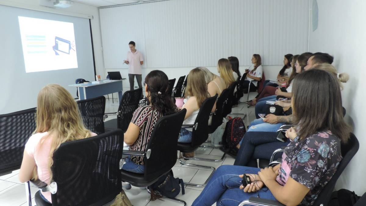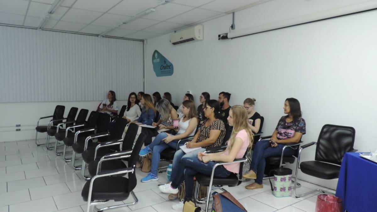Estudantes do curso de Nutrição participaram, na sexta feira, 12, na disciplina de Gestão em Organizações de Alimentação e Nutrição, de atividade sobre empreendedorismo na Criatec, organizada pela coordenadora da Incubadora, Maria Odete Palharini.