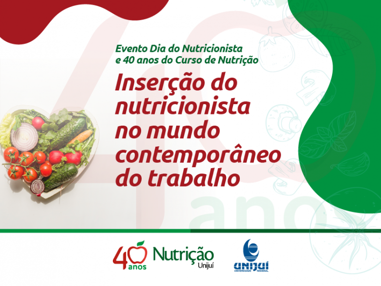 Em comemoração ao Dia do Nutricionista e dentro da programação dos 40 anos do curso de Nutrição da Unijuí, será realizada na próxima terça-feira, dia 31 de agosto, a palestra “Inserção do nutricionista no mundo contemporâneo do trabalho”