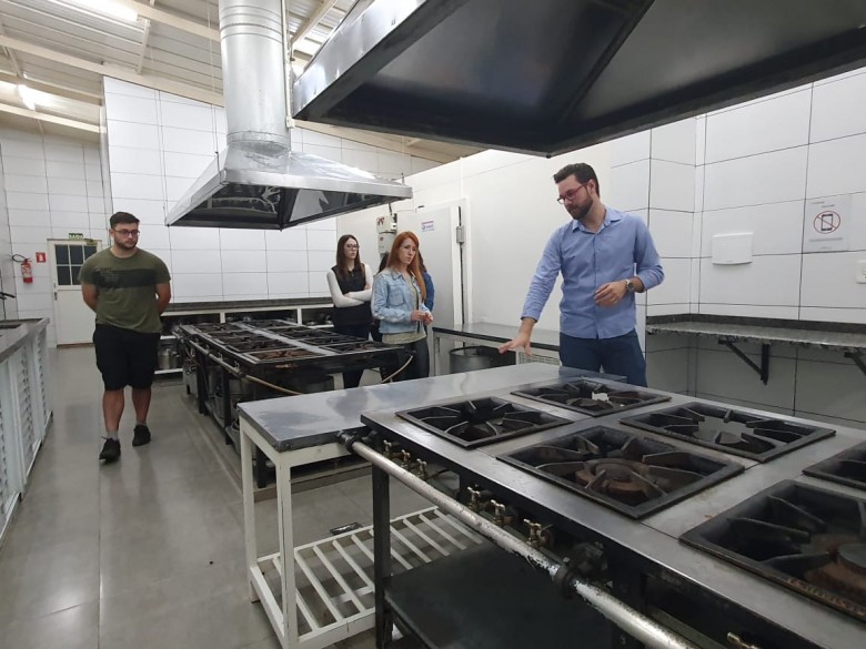 Estudantes do curso de Nutrição da Unijuí realizaram nesta segunda-feira, 18 de abril, uma visita técnica ao Restaurante Confraria, guiada pelo professor do curso, Vitor Buss, que também é sócio da empresa. A atividade faz parte da disciplina de Gestão em Unidades de Alimentação e Nutrição.