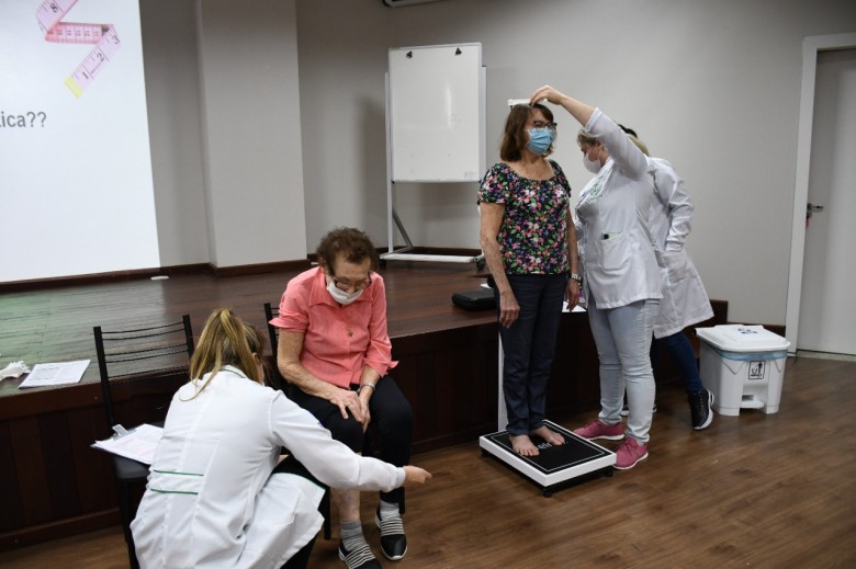 Além disso, os acadêmicos coletaram informações para realização da avaliação nutricional de cada um dos idosos, através de anamnese (entrevista realizada pelo profissional da saúde com o paciente) e avaliação da composição corporal (medida de peso, altura, circunferência abdominal, entre outros dados). Por fim, houve a degustação dos alimentos preparados pelos estudantes.