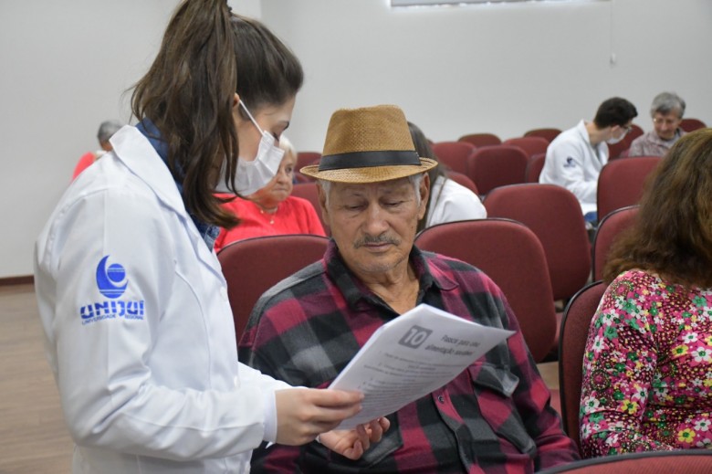 Nesta quarta-feira, 21 de setembro, o curso de Nutrição da Unijuí promoveu mais uma atividade junto ao Grupo Envelhecimento Humano com Protagonismo e Qualidade de Vida, do Hospital Bom Pastor. A ação foi realizada por meio das disciplinas Estágio em Nutrição Clínica II e Estágio em Unidades de Alimentação e Nutrição I, em parceria com os Projetos de Extensão Educação em Saúde e Atenção à Saúde da Pessoa com Deficiência.