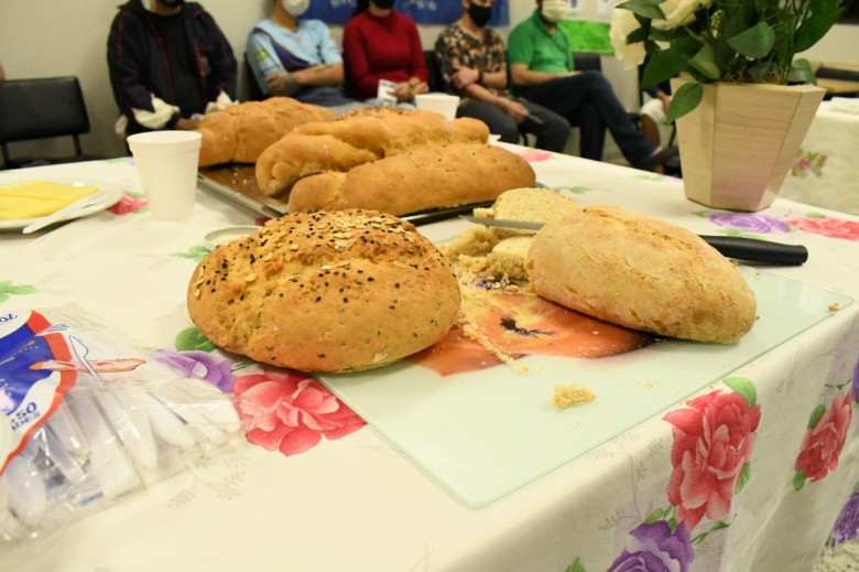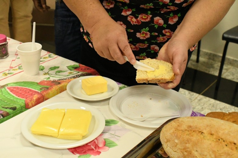 “Nesta atividade de educação alimentar e nutricional, agregamos valor nutricional à preparação de pães, a partir da adição de farelo de aveia, fibra de trigo, farinha integral, sementes, chia, gergelim e linhaça. Ao fazer essa proposta de café de manhã, buscamos mostrar aos pacientes que eles podem reproduzi-lo em casa, com frutas da época, com a produção de pães nutritivos que ajudam no controle da glicemia, que saciam a fome e, consequentemente, ajudam na redução de peso. Isso é importante porque alguns dos medicamentos que eles utilizam interferem no apetite, podendo levar ao ganho de peso”, explicou a coordenadora do curso de Nutrição, professora Adriane Huth.