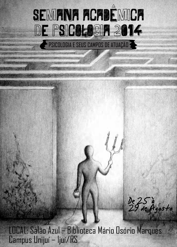 O curso de Psicologia da UNIJUÍ realiza a Semana Acadêmica 2014, com o tema “Psicologia e seus campos de atuação”, de segunda-feira, dia 25 até o dia 29, sexta-feira, no Salão Azul da Biblioteca Mario Osorio Marques, no Câmpus Ijuí. No mesmo período, o curso de Psicologia do Câmpus Santa Rosa também realiza sua Semana Acadêmica, com o tema “As Psicopatologias na Atualidade”.