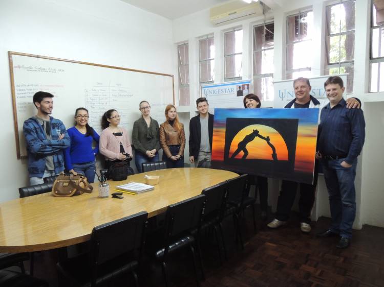 Pacientes do Centro de Atenção Psicossocial - Caps Colmeia presentearam a Unigestar com um quadro pintado durante as sessões de arteterapia. O presente foi uma retribuição ao trabalho de assessoria em psicologia prestado para a Secretaria de Saúde do munícipio ao longo de quatro anos. Segundo Daniel Ruwer, coordenador da Unigestar, a assessoria cuida do campo da saúde do trabalhador e RH, realizando um projeto de acolhimento e ambientação dos servidores.