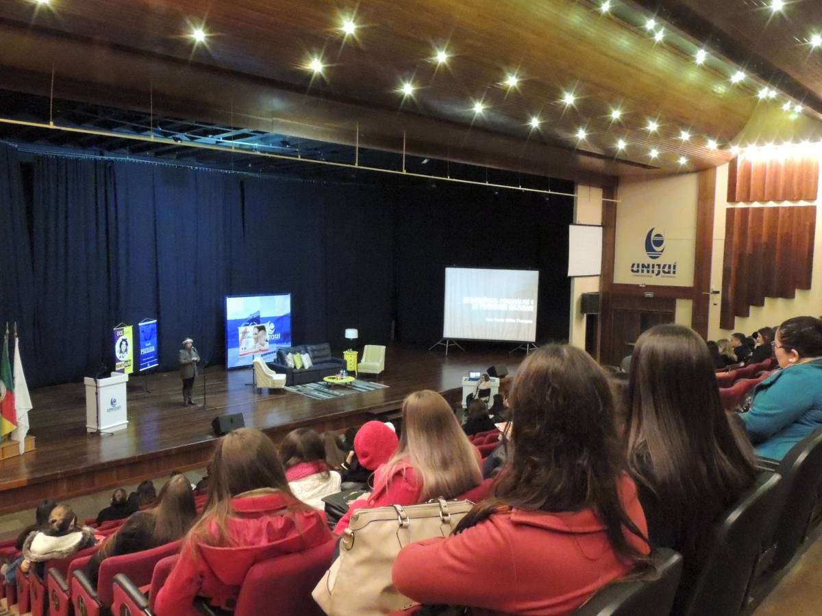 Na noite desta segunda-feira, dia 19, teve início a Semana Acadêmica do curso de Psicologia da Unijuí – Campus Ijuí. Na abertura, realizada no Salão de Atos Argemiro Jacob Brum, os participantes assistiram palestra com o tema “Adolescência, Psicanalise e Produções Culturais”, com Ana Paula Wilke François.