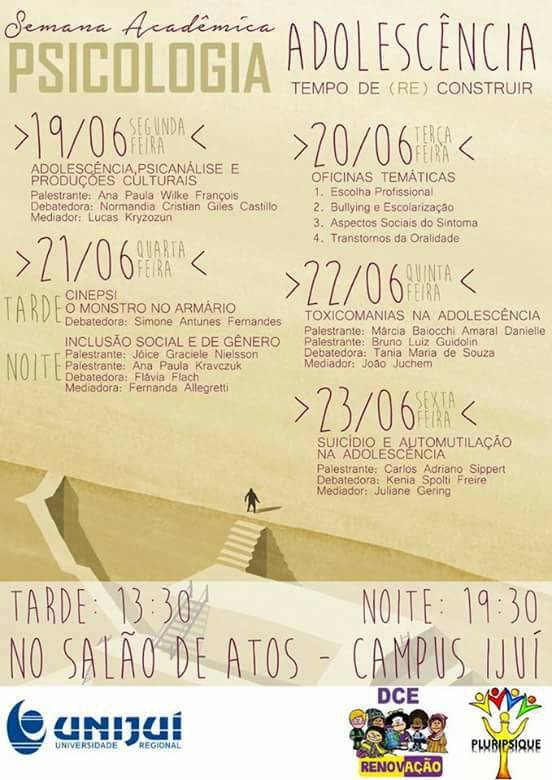 Nesta edição, o evento tem como temática geral “Adolescência: tempo de (re) construir”.