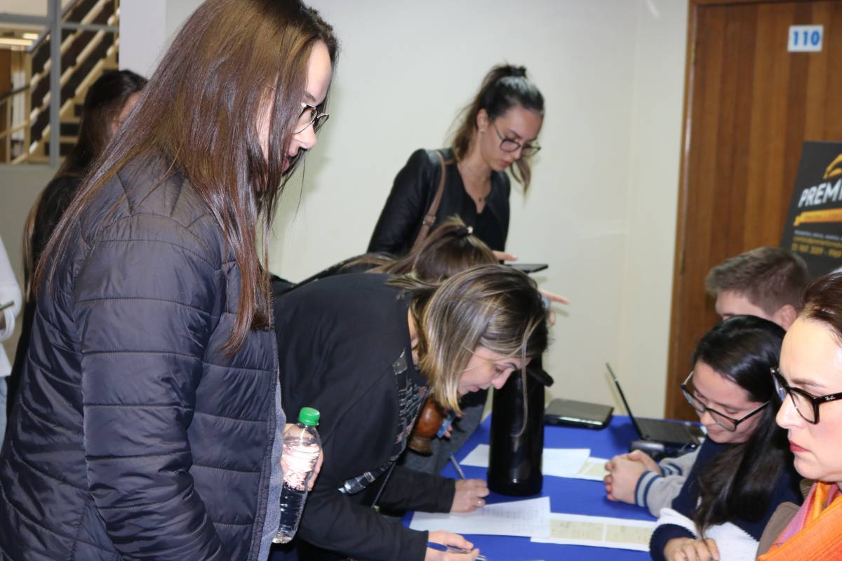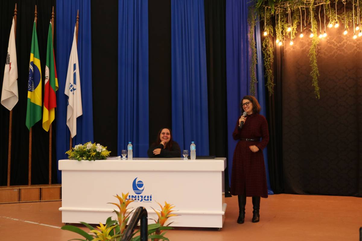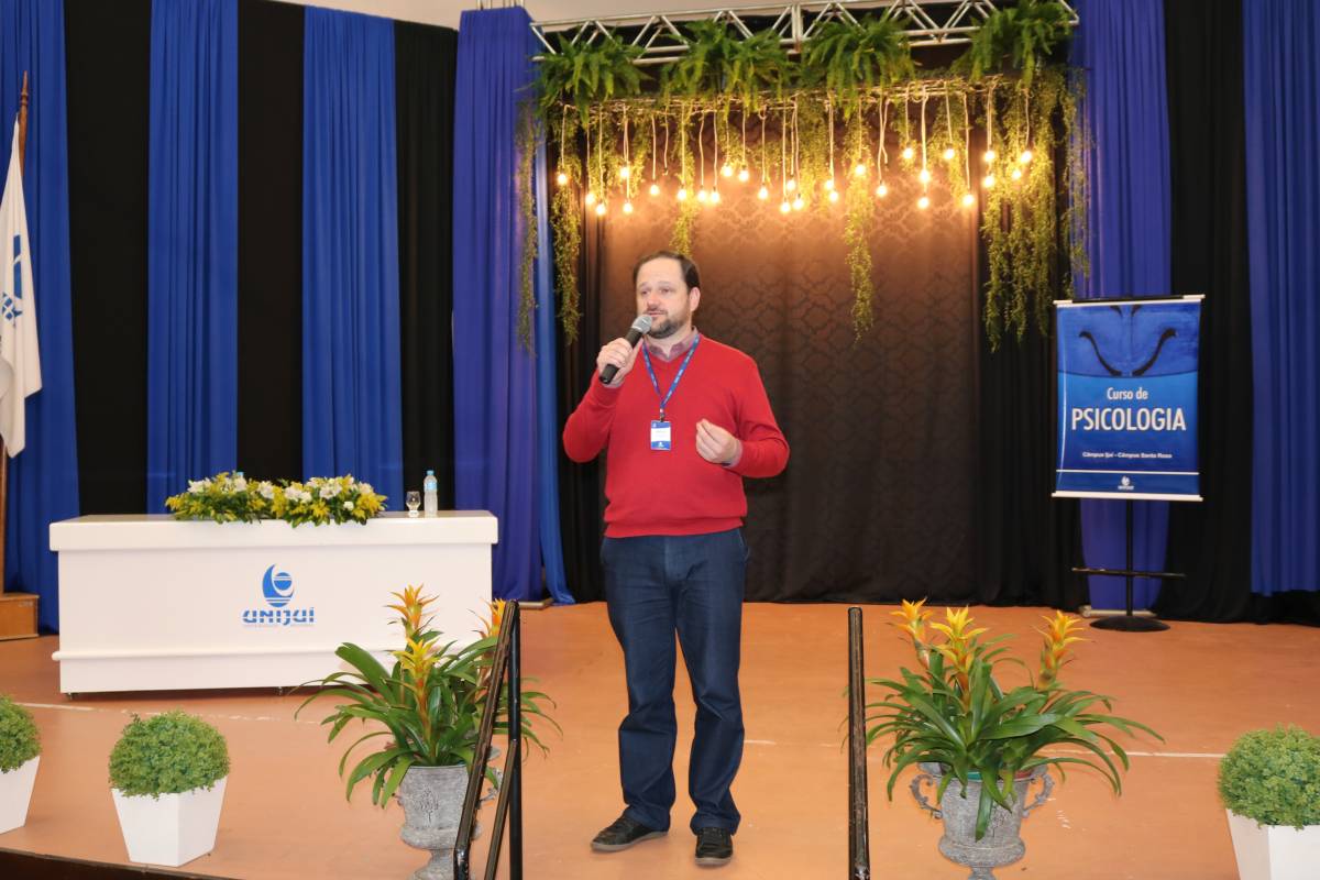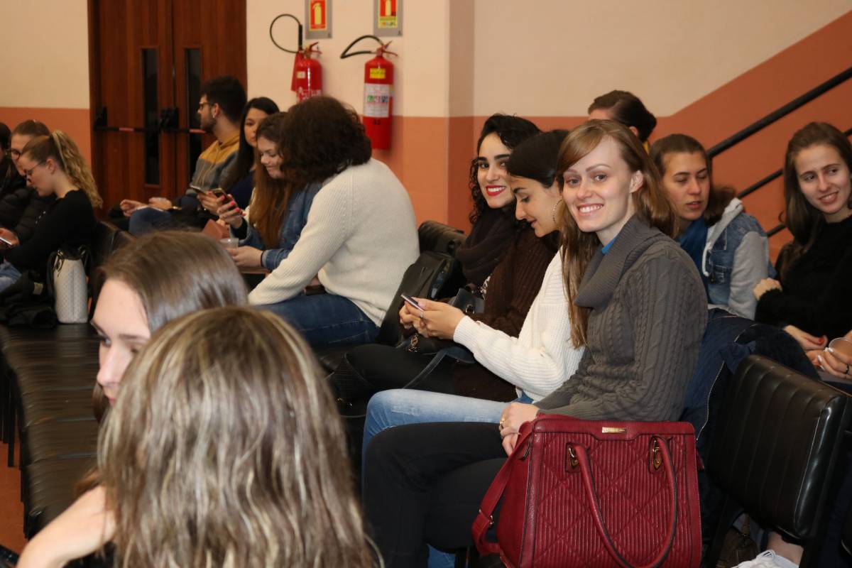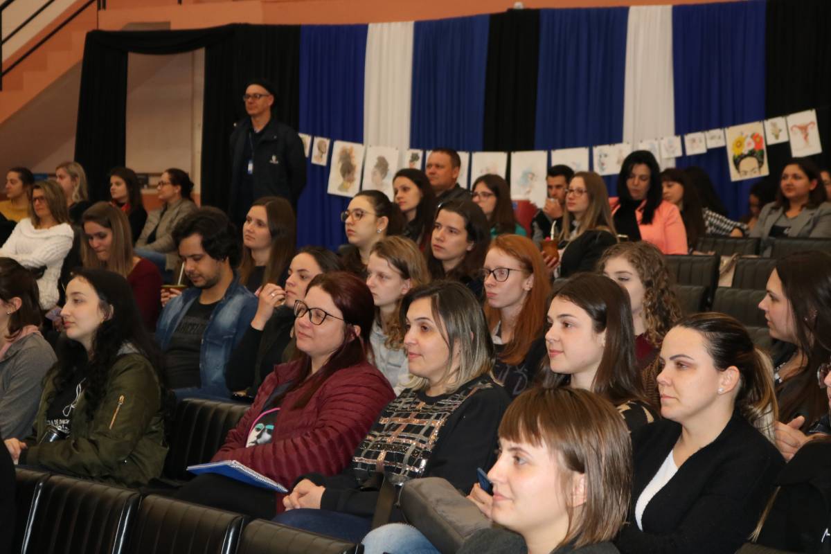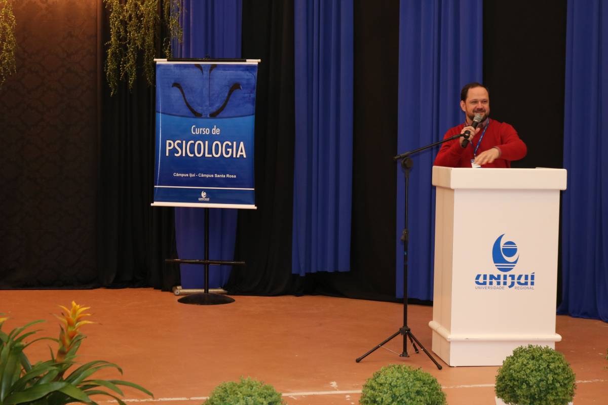 A Semana Acadêmica do curso de Psicologia teve abertura das atividades na noite de segunda-feira, dia 26, no campus Santa Rosa, com a presença da egressa do curso e psicóloga Fabiane Angelita Steinmetz, que abordou a temática "A função do cuidador no processo de subjetivação dos bebês que frequentam escolas de educação infantil" e a experiência no VI Congresso Internacional Transdisciplinar sobre o Bebê, em Paris na França. Fabiane destacou a importância do lugar dos profissionais que acolhem os bebês na educação infantil. “O lugar dos profissionais é de maternagem, aconchego e subjetivação, visto que os bebês passam parte significativa do dia com eles. É importante que possamos olhar para esses profissionais com o valor que lhes cabe, enfatizando sua importância na vida dos bebês. Que eles possam ter orgulho legítimo de participar da constituição psíquica dos bebês”, afirma a psicóloga.