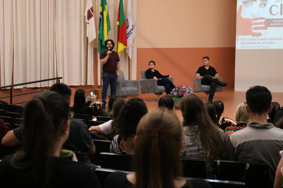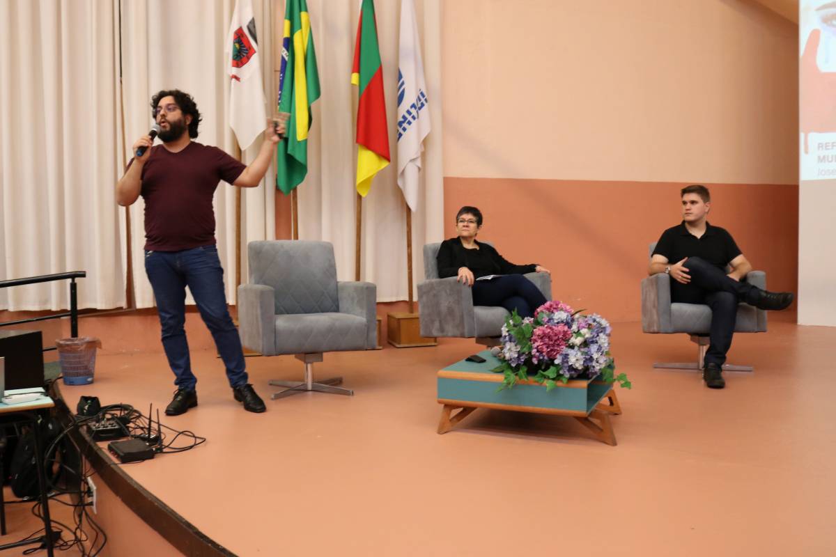Durante a tarde de hoje o professor do curso de História da Unijuí, Josei Fernandes Pereira, trouxe reflexões sobre práticas de violência contra as mulheres na história. Participaram do debate a professora Janete Teresinha de Aquino Goulart e o acadêmico Felipe Brentano Caneppelle.