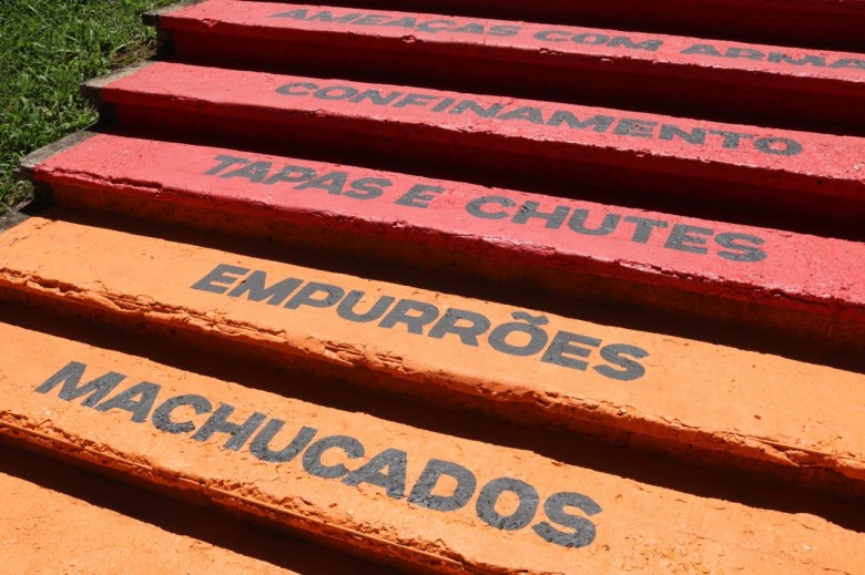 Uma escada, localizada no Campus de Ijuí, recebeu um projeto de intervenção que visa chamar a atenção para o crescente número de casos de violência contra as mulheres. O trabalho, finalizado na tarde desta terça-feira, dia 22 de dezembro, foi realizado pela professora Irís Campos e pela acadêmica do 10º semestre do curso de Psicologia, Joana Patias Goi, que atua como estagiária junto ao Estágio em Psicologia e Processos Sociais.