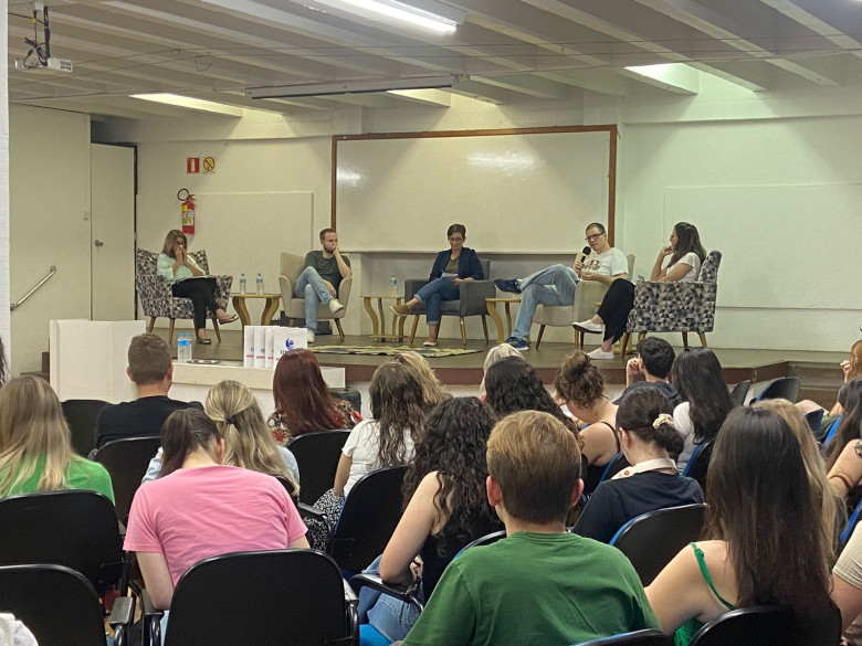 Na abertura da Jornada Clínica, os psicólogos Diego Felipe Portolann, Tania Maria de Souza e Tatiana Fagundes Audino participaram de uma roda de conversa com o tema “O Diagnóstico Estrutural na Atualidade”, mediada pela professora Carolina Baldiserra Gross. Eles debateram os diferentes vieses sobre o tema, como as novidades, contextualização histórica e como as estruturas tem se modificado com o tempo. Ao fim do encontro, os estudantes puderam tirar dúvidas com os profissionais e ampliar os seus conhecimentos.