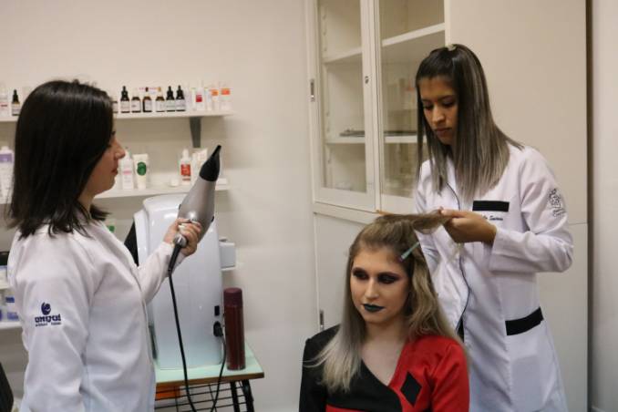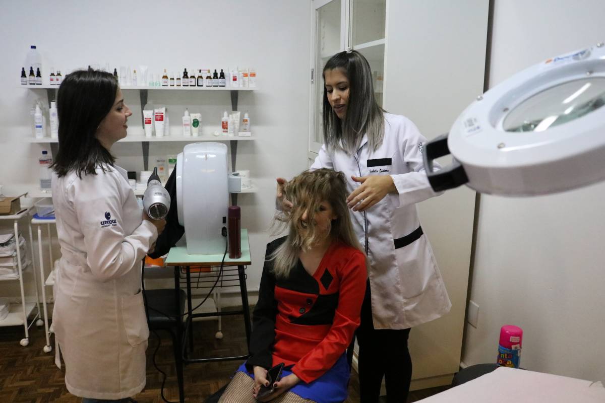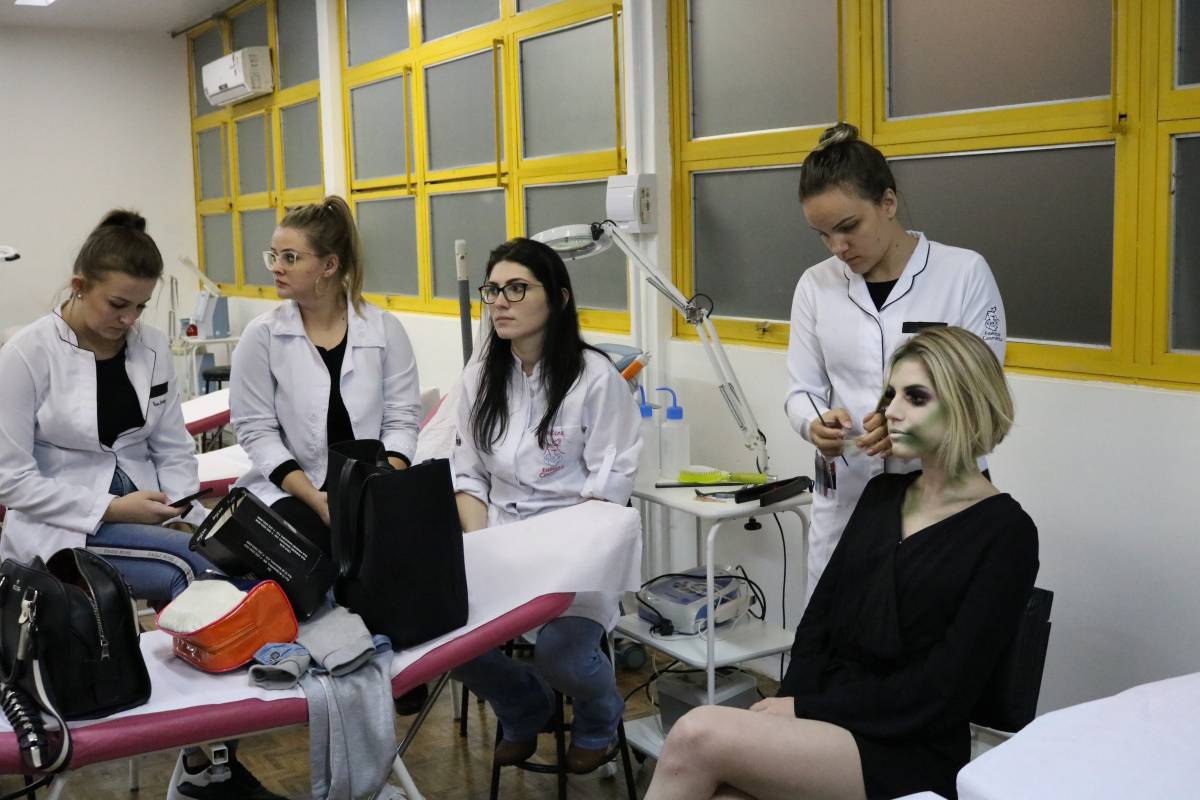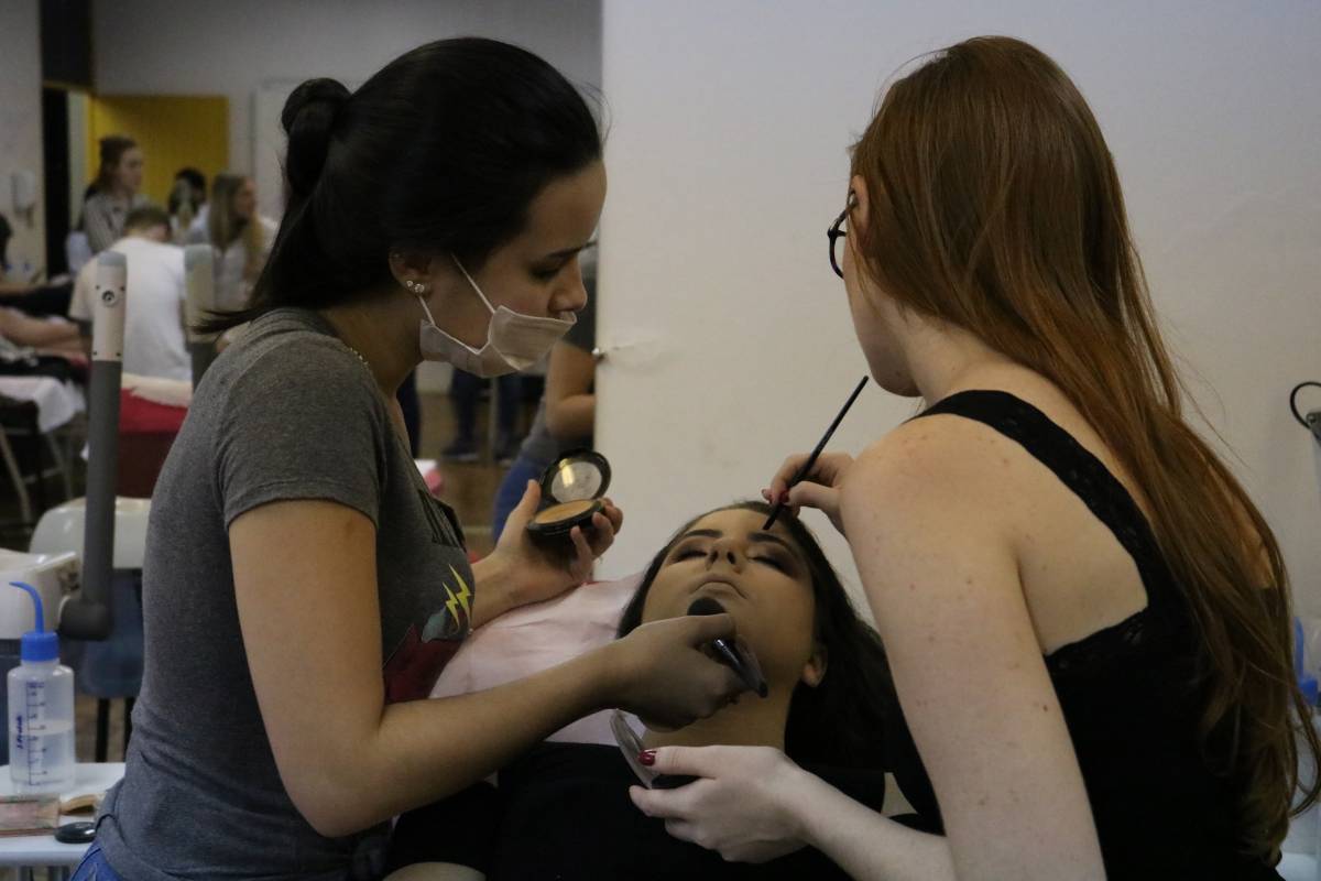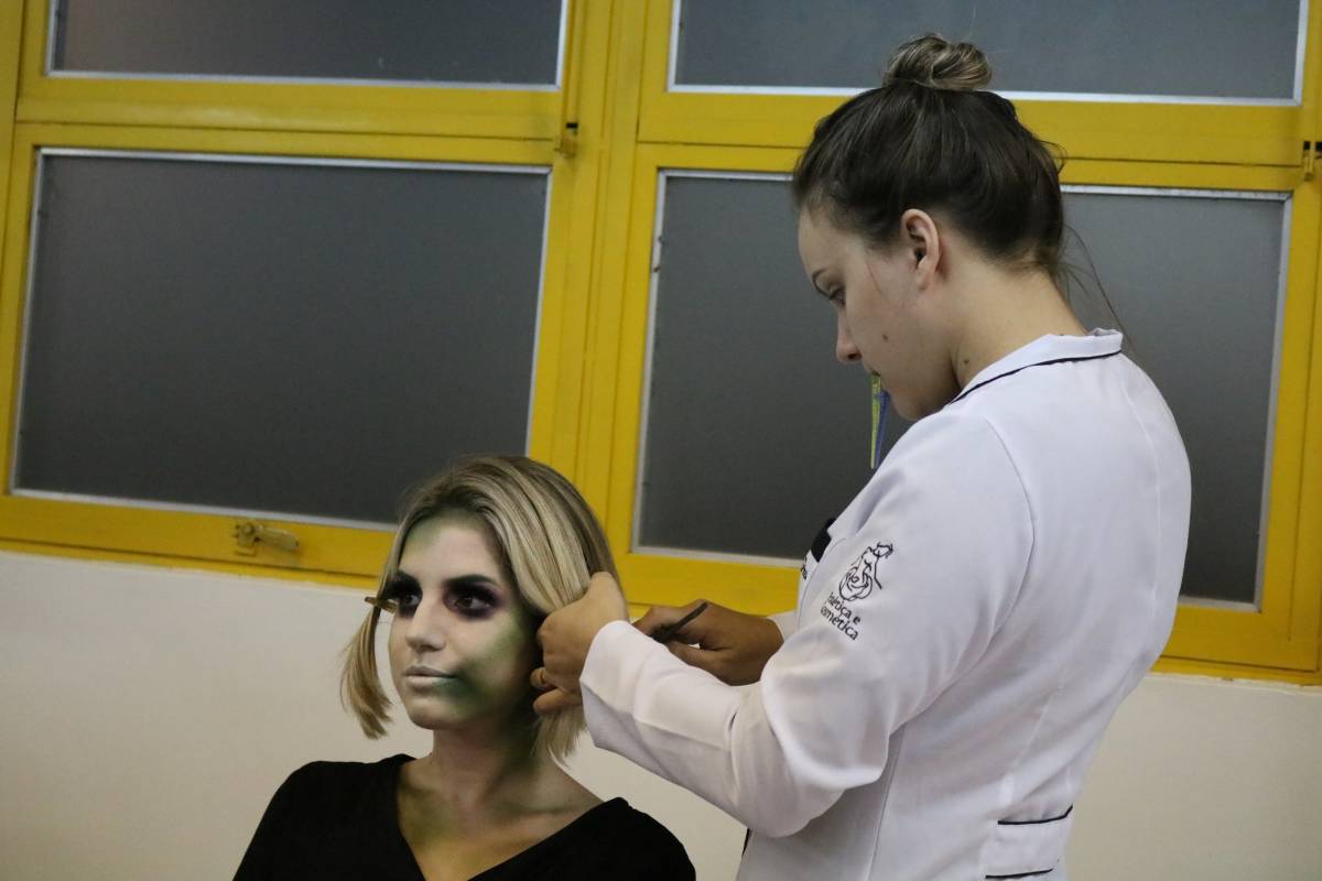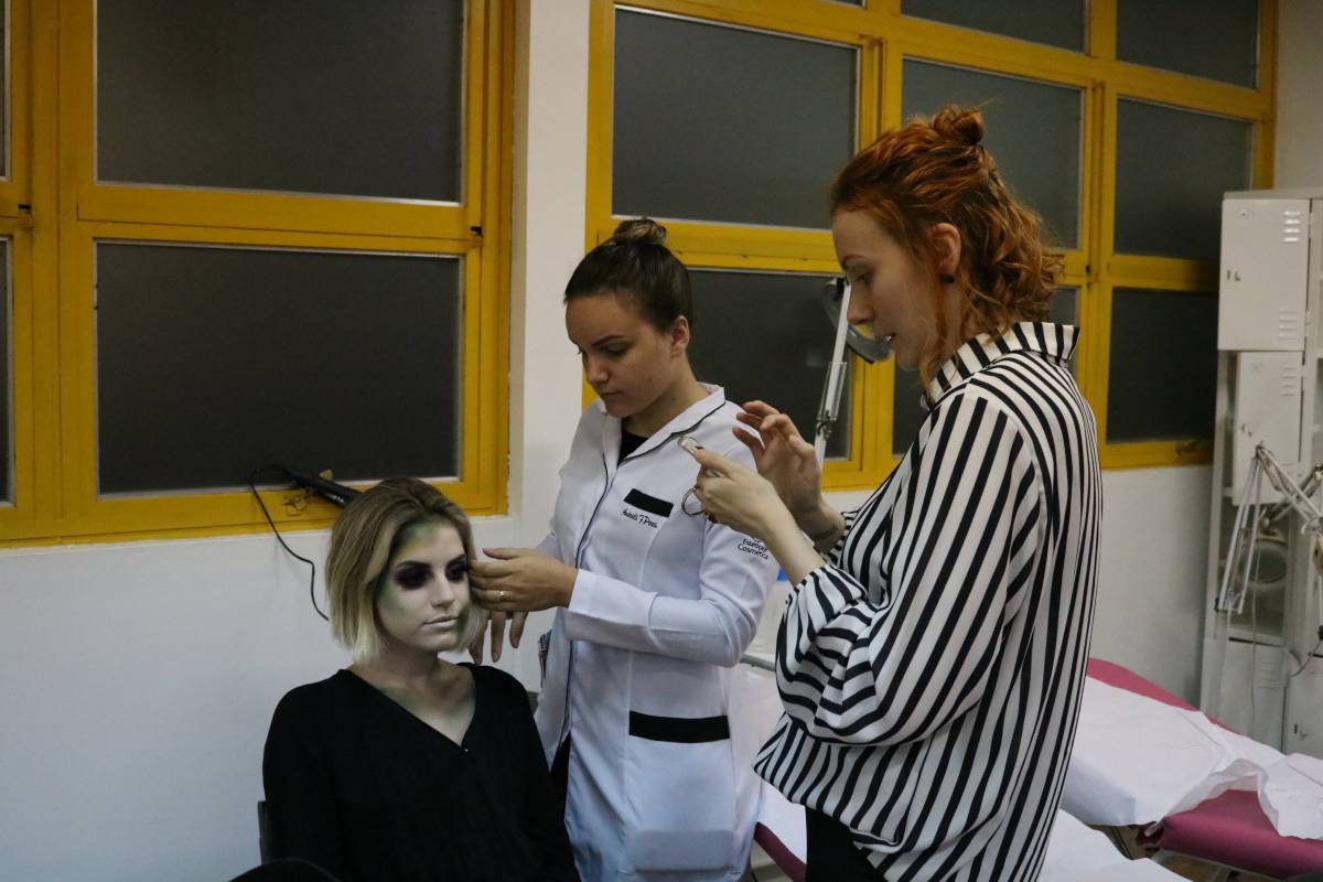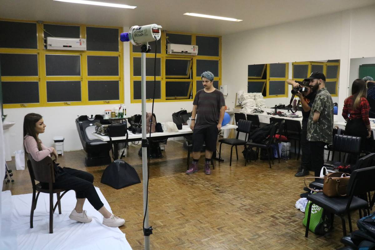 Na noite de terça-feira, 18 de junho, uma importante etapa do trabalho foi desenvolvida: a produção de fotos para o catálogo do desfile. A atividade contou, ainda, com a colaboração do curso de Estética e Cosmética da Unijuí. “As estudantes do Curso de Estética e Cosmética realizaram a produção artística dos modelos do catálogo do Desing. A interação entre os cursos é de suma importância, pois proporciona aplicação dos conhecimentos práticos”, observou a coordenadora do curso, professora Edna Linassi Coelho.