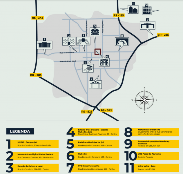 O mapa temático demonstra o município com diversos ícones, cada um representando um local da cidade, junto com dados importantes, que podem auxiliar no planejamento do visitante. O conteúdo do mapa também será exibido no guia, no site e no aplicativo. Todas essas opções estarão disponíveis em inglês e espanhol.