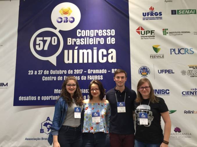 Estudantes do 8° semestre do curso de Engenharia Química da Unijuí, Arthur Mateus Schreiber, Bárbara Pezzini Moreira, Camila Hammarstrom Goi e Carolina Almeida Bragato, participaram do 57° Congresso Brasileiro de Química (CBQ), na cidade gaúcha de Gramado.