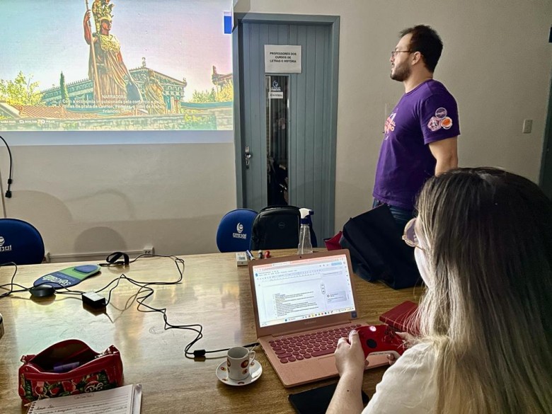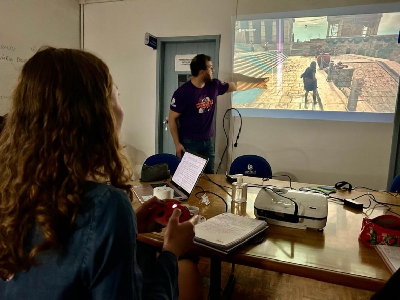 Estudantes do curso de Letras: Português e Inglês da Unijuí tiveram na noite desta segunda-feira, 11 de setembro, uma aula diferenciada dentro da disciplina de Teoria da Literatura. O professor responsável, Anderson Amaral de Oliveira, utilizou o jogo Assassin's Creed para trabalhar a literatura clássica da Grécia Antiga, a exemplo de Édipo Rei de Sófocles, e as teorias de Aristóteles. O jogo permite que seus usuários façam visitas e aprendam ainda mais sobre o mundo antigo.